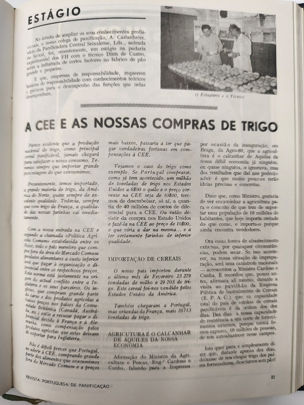 Um artigo sobre as compras de trigo à CEE (a futura União Europeia) discute limitações, preços, impactos económicos e a necessidade de assegurar qualidade e quantidade.
