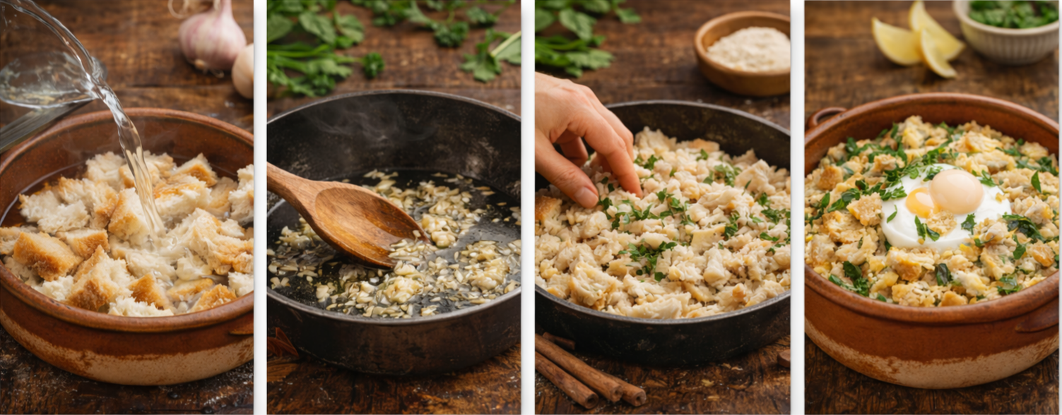 O pão era esfarelado ou cortado em pedaços e integrado em caldos quentes, garantindo energia e conforto em contextos rurais e de clima mais rigoroso.